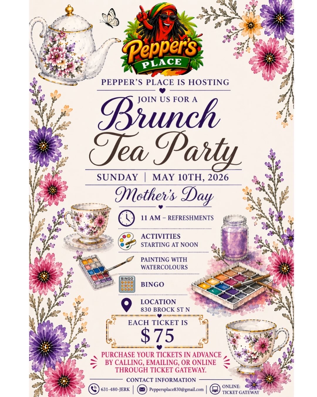 Join us on Sunday, May 10th, 2026 at 830 Brock St N for a relaxing and memorable afternoon filled with delicious food, soothing teas, and engaging activities.