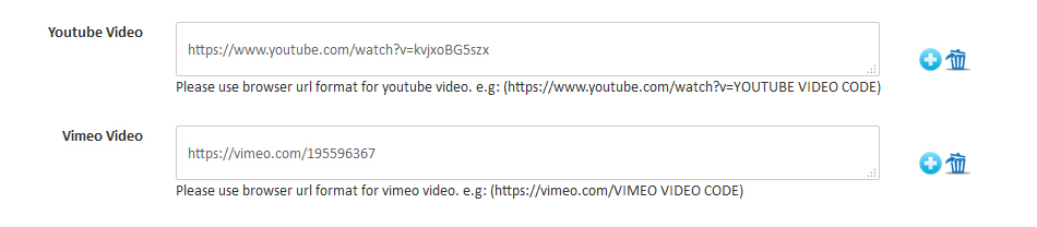 You can add promotional videos from Youtube and Vimeo. Copy the video url and paste in available video section.
