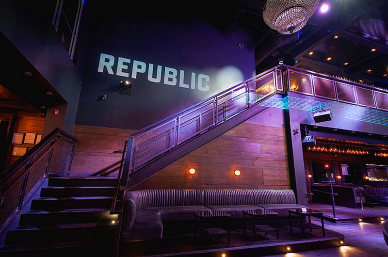 Nightclub featuring hip-hop & house DJs in a modern, bi-level setup with table service & dancing.